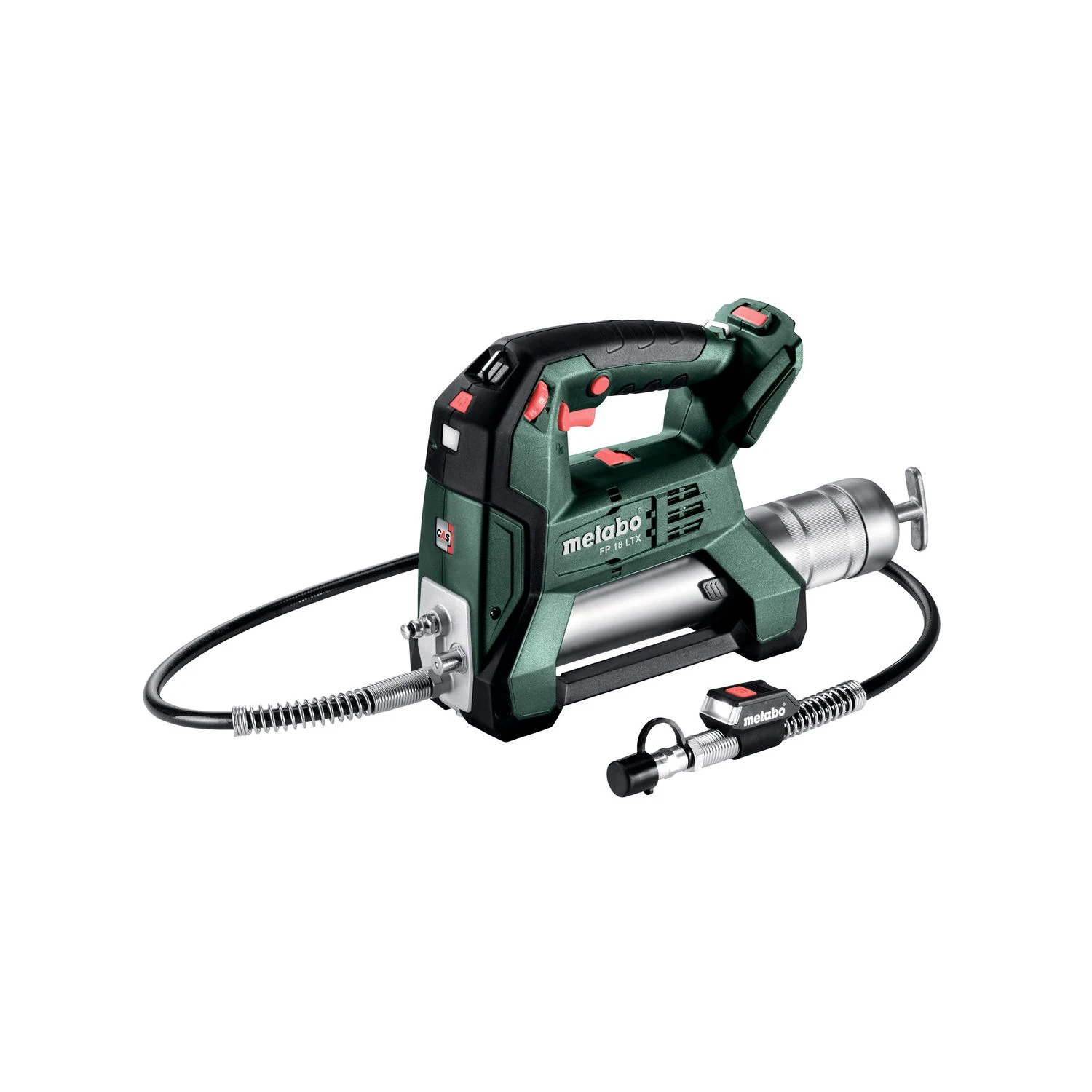 The Metabo 600789850 FP 18 LTX 18V LXT Grease Gun Bis a brilliant tool for professional mechanics. Whether you are lubricating a door hinge or changing oil this tool offers you both high and low-pressure flow rates to give you more choice. This 18V grease gun has a discharge pressure of 690 / 413 bar with a speed of 290 / 100 g/min. To ensure cleaner working a thumbwheel with ten settings modifies the discharge pressure and the integrated bleeding valve affords constant work progress. Weighing only 4.4kg with a battery pack, this lightweight and compact tool will allow you to work comfortably in tight spaces while the 1200mm long hose will give you more access and room for manoeuvre. The LED light is powerful enough to illuminate dark areas so you can work in dim areas safely and accurately.
