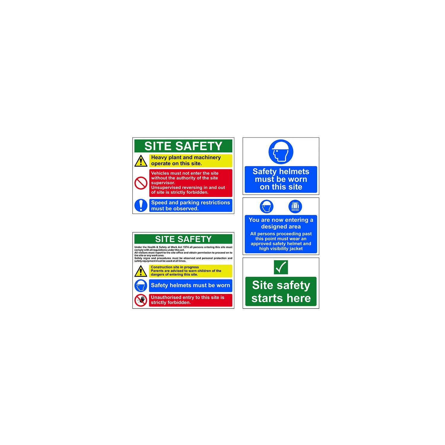 This Scan safety sign site pack contains 5 signs.