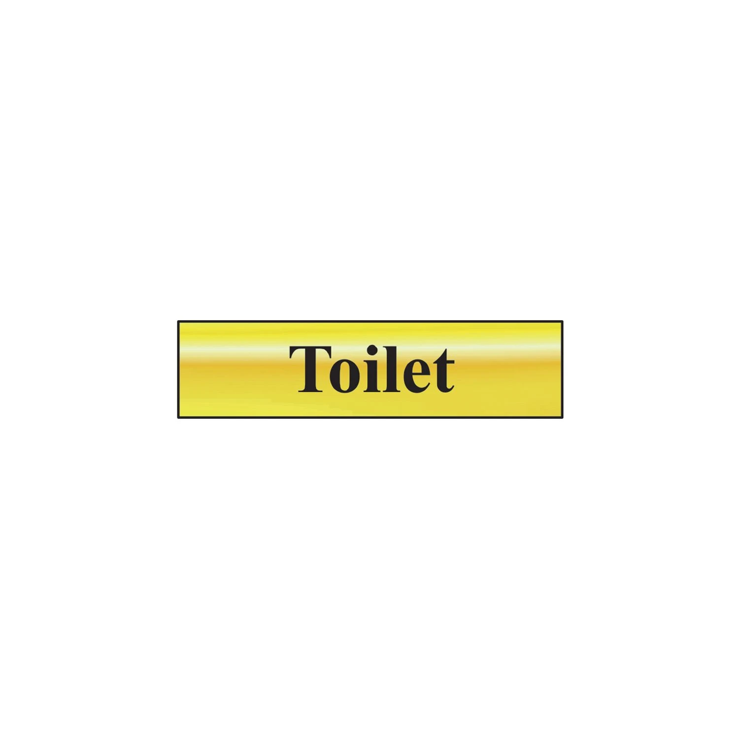 Polished brass effect self-adhesive bathroom sign with black text/graphic. Printed using UV resistant inks.