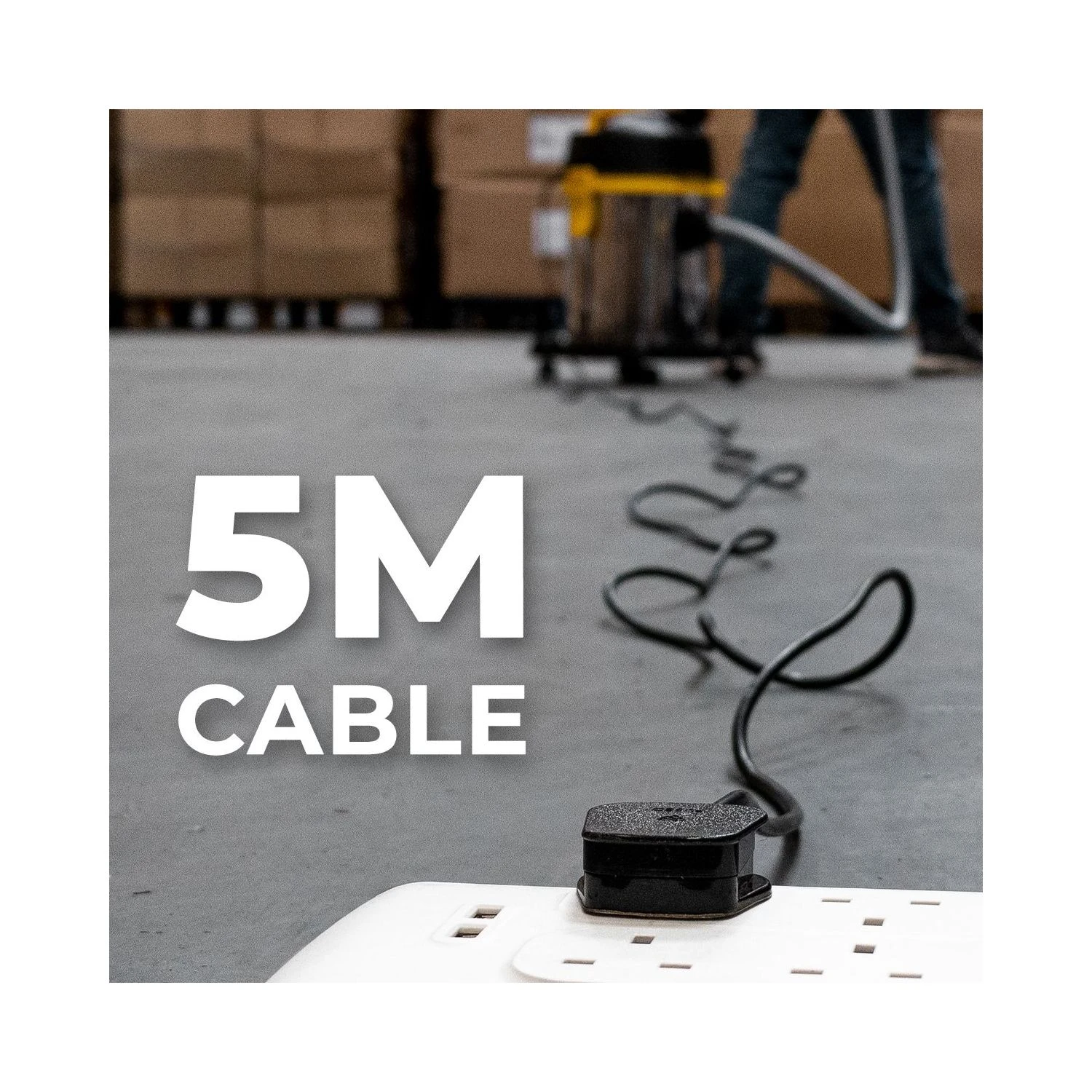 - Extended Power Cable 5m: The vacuum cleaner is equipped with an extended 5m Power Cable. This length leaves room for the vacuum cleaner to manoeuvre and can work over long distances without connecting an additional power cord. This is useful when you are not close to an outlet.