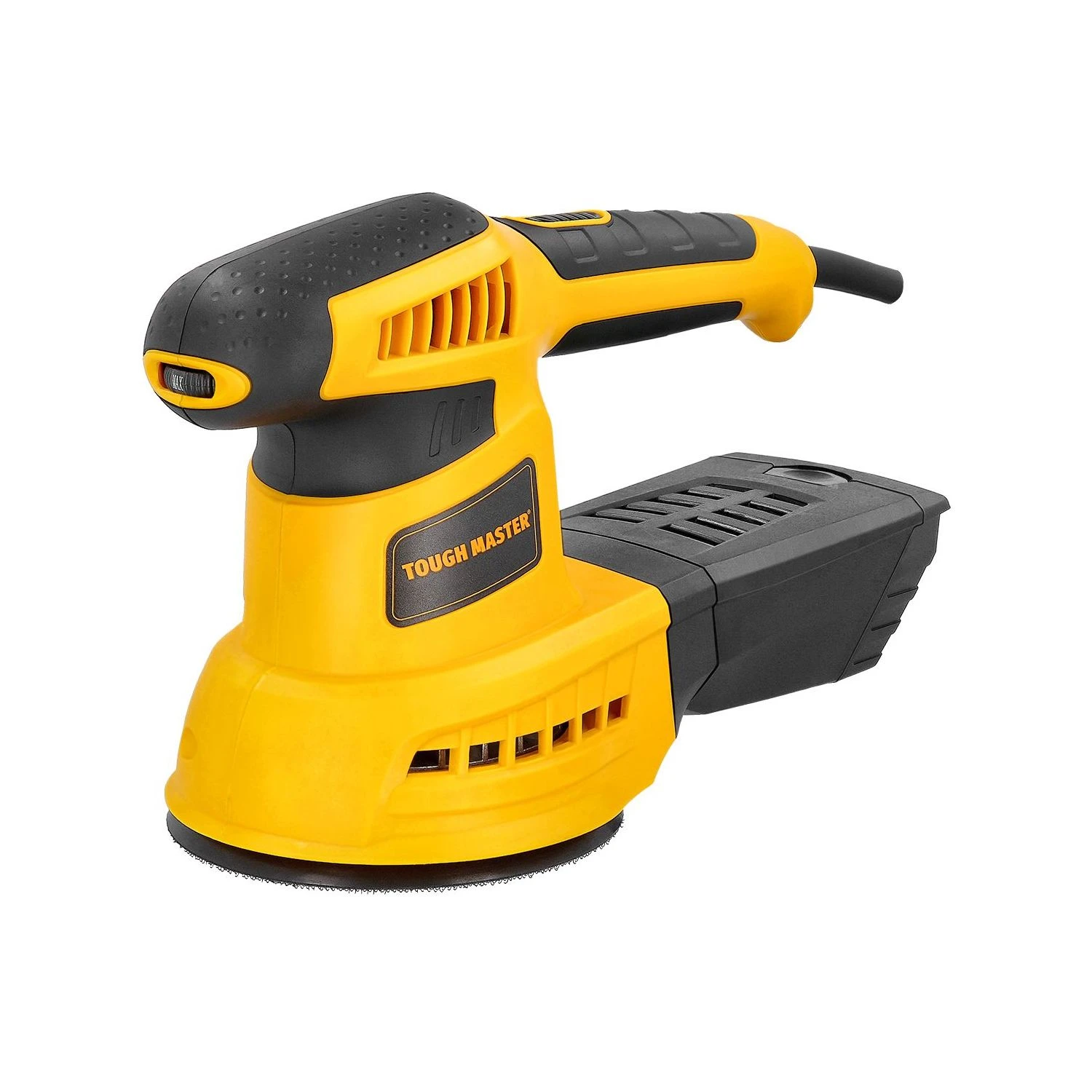 The TOUGH MASTER® TM-OS125E is a high-performance, durable orbital sander. It features a 430W high-performance pure-copper motor; the variable speed control offers 6 different speeds to deliver between 12,000 and 26,000 sanding strokes per minute. With its eccentric 2.5mm stroke, this orbital sander is ideal for fine sanding. The filtered dust collection box is easy to empty. Connect the orbital sander to an industrial vacuum cleaner for efficient dust collection while you work. The replaceable hook-and-loop disc pad is quick and easy to change. The long 3m power lead expands your work area and reduces the risk of accidentally turning off the tool during operation. The durable, ergonomic soft-grip handle reduces vibration and provides superior comfort for an extended sanding session. Weighing only 2.18 kg, this orbital sander has a compact size to make sanding even smaller areas efficient. Our TOUGH MASTER® Orbital Sander can be used in a variety of applications, including woodworking, paint stripping, metalwork and automotive bodywork, and is ideal for finishing work.
