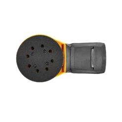 - Safe design: This compact, lightweight orbital sander has a contoured, rubberised handle that provides a comfortable, safe grip. There’s a sanding pad brake to protect the operator. The filtered dust box keeps your workspace clean; it’s also easy to remove for quick dust disposal. You can connect the orbital sander to an industrial vacuum cleaner for more efficient dust collection