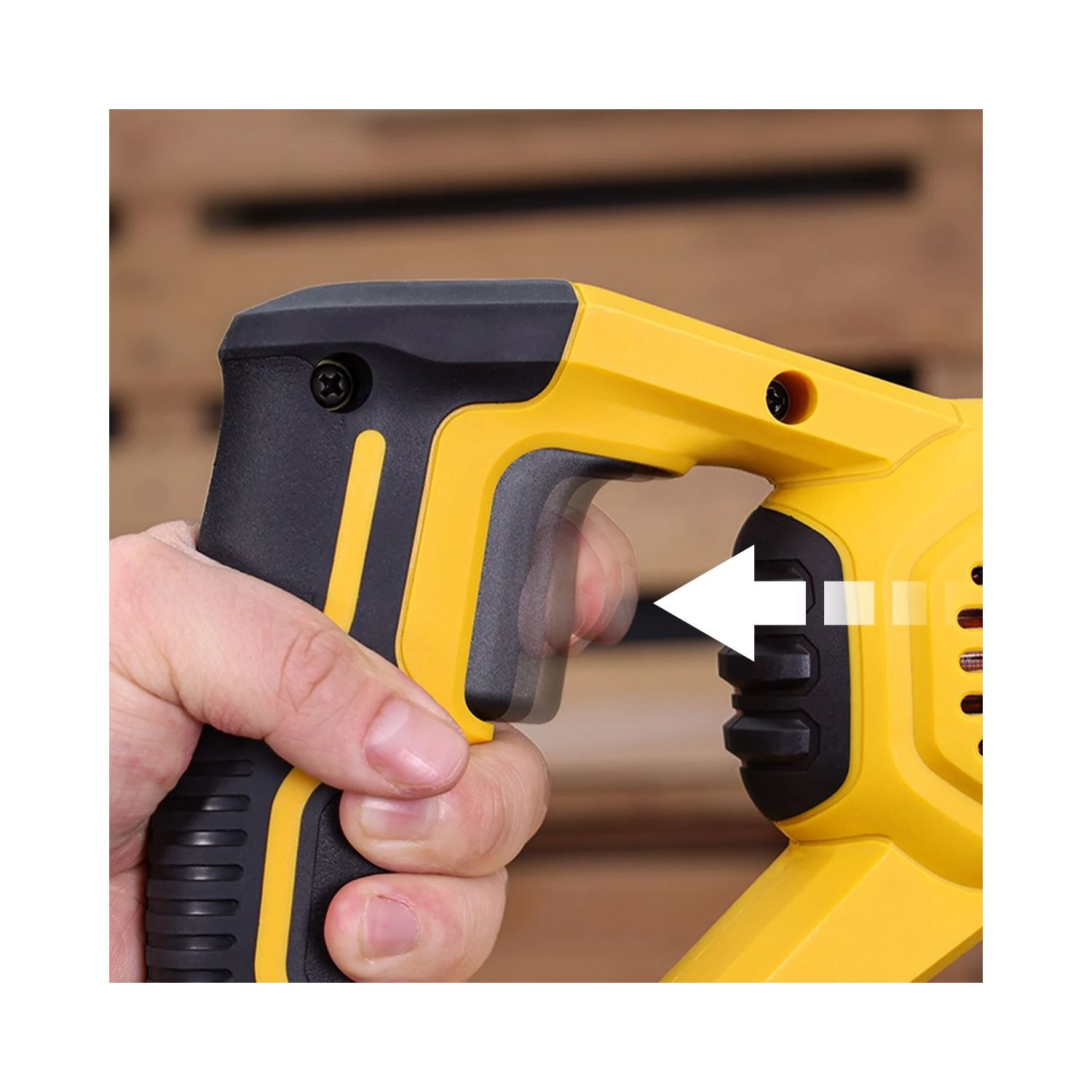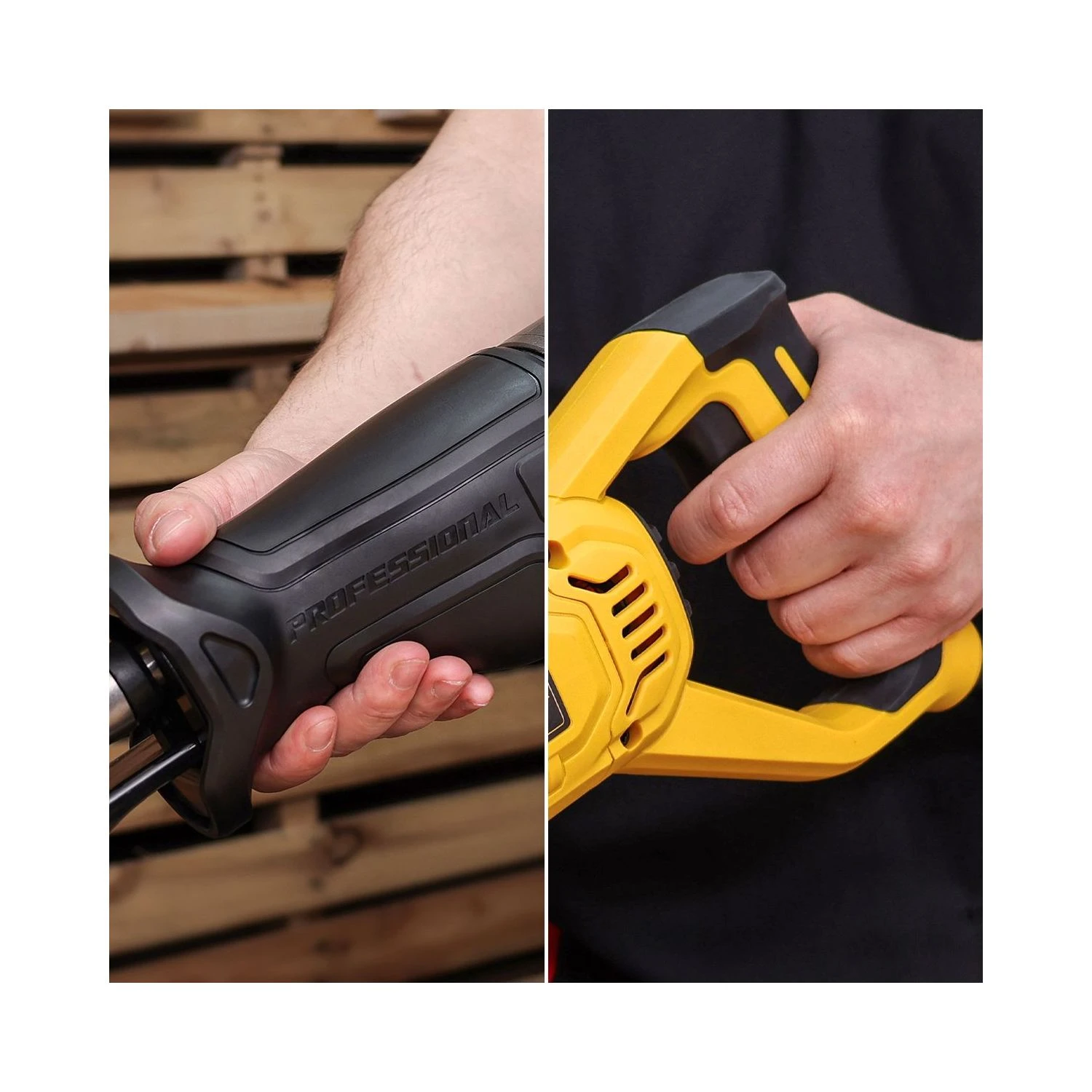 - Soft grip: The ergonomic handle for this powerful electric reciprocating saw has a soft-grip, non-slip rubberised coating to reduce vibration and fatigue while providing a secure hold for improved performance