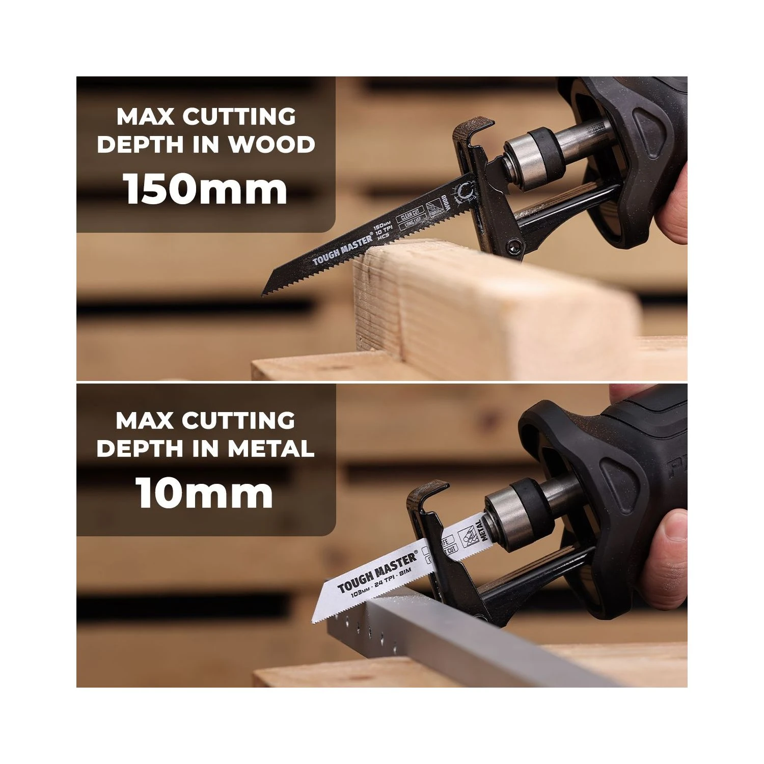 - Quick blade change: Changing the saw blade for your TM-RS150E reciprocating saw is quick, thanks to the included hex key. When installing the saw blade, press the bolt with the hex key to open the groove at the time of installing the blade. Our saw comes with two TOUGH MASTER® saw blades, one for wood and metal