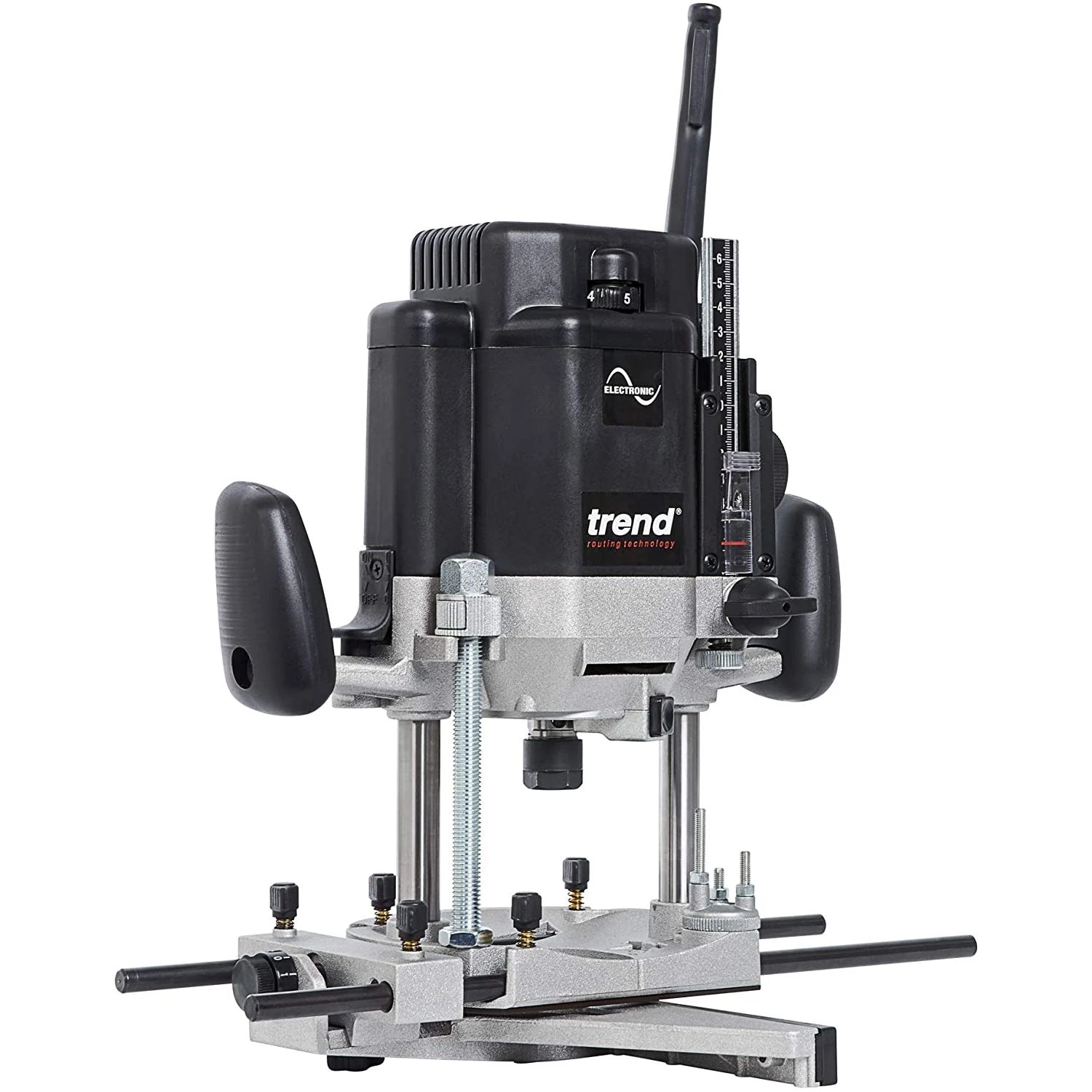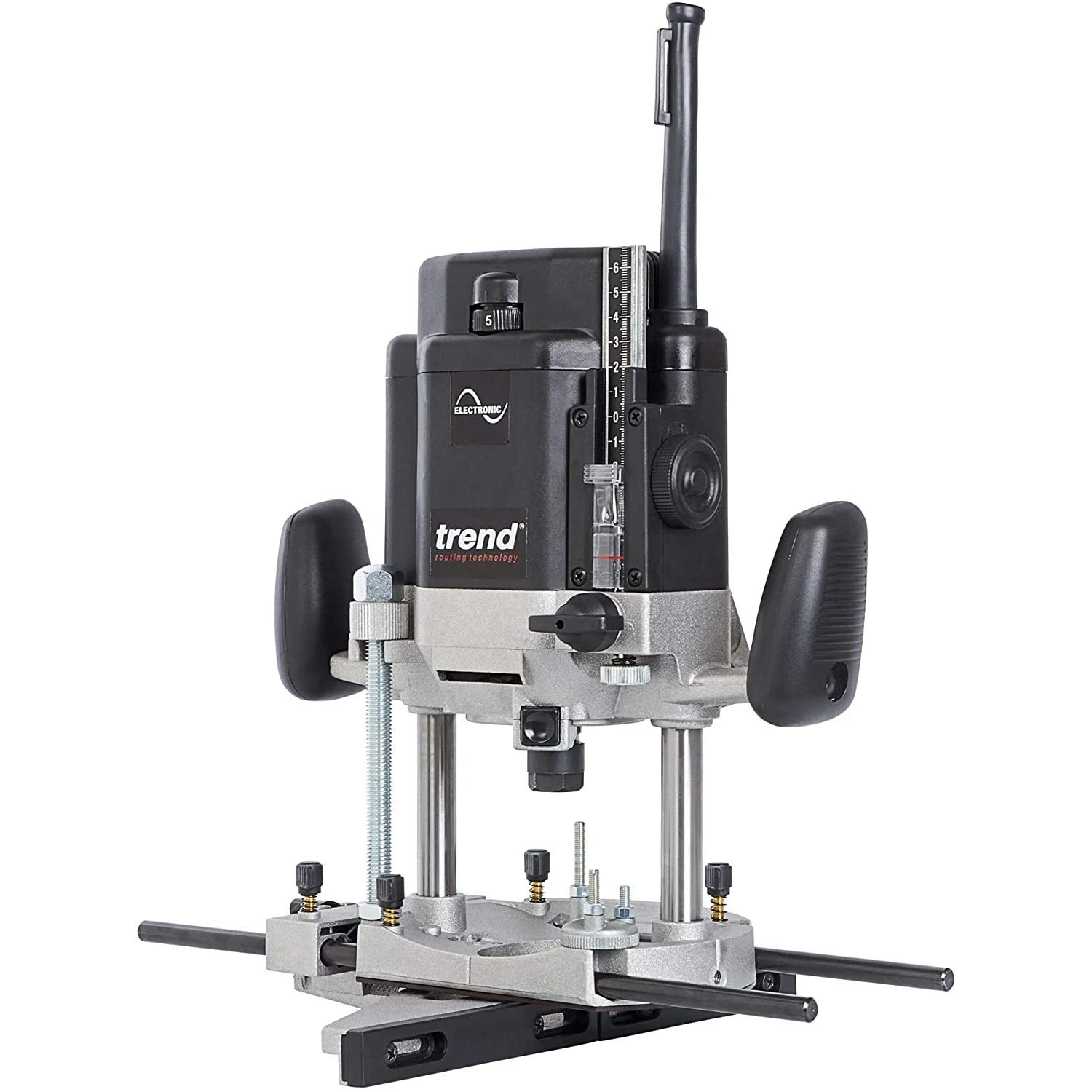 For power, precision, and performance the Trend T10ELK is the router trade and hobbyist alike can rely on. Ideal for heavy duty or finer detailed work, the 115-volt 2000-watt variable speed motor has full wave electronics to keep the power supply constant under load for optimum performance at all levels. Equally at home on site or in the workshop, this router will help complete all sorts of jobs from heavy duty applications like worktop jointing or making fine moulding and inlaying. The soft start motor and variable speeds of 8000rpm to 20000rpm maximises the capabilities of the router across all routing applications. The maximum plunge stroke of 80mm is ideal for making the mortices when lock fitting or bigger joinery jobs, making this the ultimate workhorse router for jigs and template use. This professional router can easily accommodate moulding and jointing cuts freehand or with the micro-adjustable fence across a variety of applications.